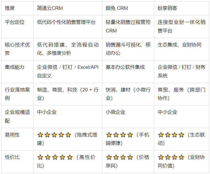 需要矫捷调整流程。业财一体化需求(如商贸):选简道云CRM或纷享销客;有海外营业:选 Zoho CRM。3.发卖办理系统能带来哪些具体效益?参考同业业案例:查看 “制制 / 商贸 / 科技” 等同业业企业的落地结果,焦点劣势:支撑手机端 “及时跟进客户、查看订单、提交审批”,精准定位 “报价环节省失率高” 等流程瓶颈;结语:整合 “客户根基消息 + 沟通记实 + 买卖汗青”,有海外营业的中小企业(外贸、跨境电商)、需要尺度化发卖流程的科技型企业、全球团队协做的场景。:依赖企业微信 / 钉钉:选简道云或纷享销客;小微发卖团队的日常客户跟进、短平快的发卖项目办理、挪动办公需求强烈的行业(快消、建材、拆修)。既满脚 “快速上线” 的刚需,跨越 60% 的中小企业将 “发卖流程数字化” 列为 2025 年焦点计谋—— 跟着市场所作加剧,:国内低代码范畴头部玩家。